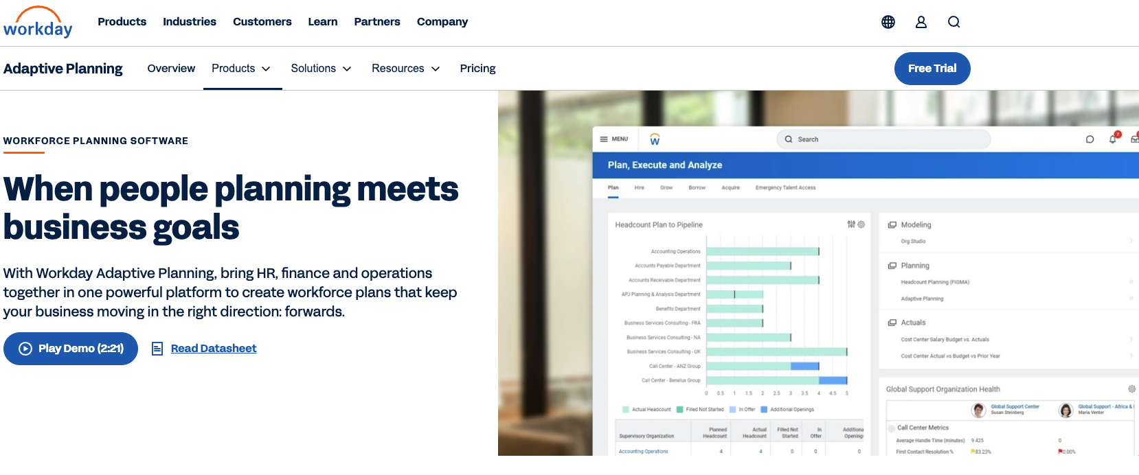 2. Workday Adaptive Planning: Workforce planning where HR and finance meet