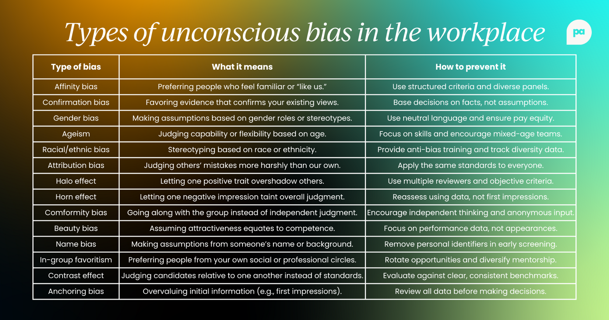 For people leaders, this translates into a competitive must-have: removing bias helps you fuel adaptability, creativity, and growth.